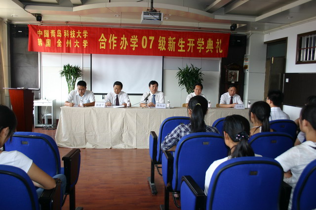 9月18日上午,pg娱乐电子游戏中韩合作办学项目2007级新生开学典礼在学院会议厅隆重举行。
