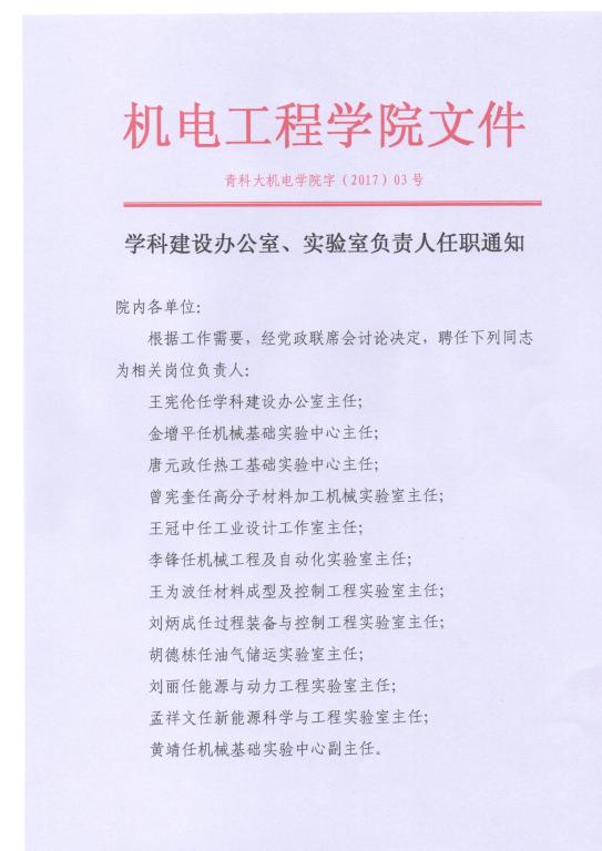 pg娱乐电子游戏学科建设办公室、实验室负责人任职通知