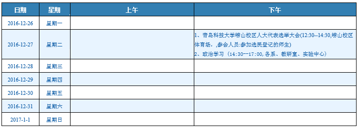 一周会议安排(12/26-1/1)