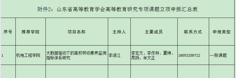 依据学校《关于开展2023年山东省高等教育学会高等教育研究专项课题申报工作的通知》学院组织符合条件的教师申报,共有1位教师提交材料,现拟推荐以下项目进入学校评审环节,并进行公示。公示期三天(2024年1月12日-1月14日),如有异议,请在公示期内向pg娱乐电子游戏教学办反映。