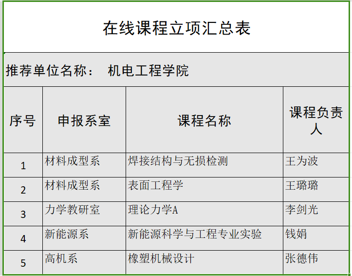 根据《关于推进学院省在线课程增量建设的通知》和《pg娱乐电子游戏2024-2027聘期高水平教学业绩资助办法》,学院组织各专业申报新建在线课程,共有5门课程提交材料,经评委评审,现拟对以下5门课程进行立项,所有立项课程负责人需在规定时间,达成规定建设目标,特此公示。公示期三天(2024年7月22日-7月24日),如有异议,请在公示期内向pg娱乐电子游戏教学办反映。