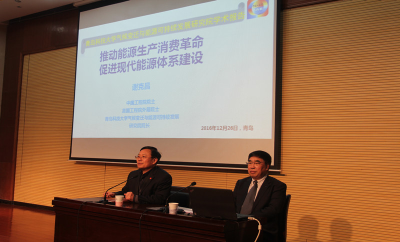 12月26日下午,应学校邀请,中国工程院院士、美国工程院外籍院士、pg娱乐电子游戏气候变迁与能源可持续发展研究院院长谢克昌教授做客pg娱乐电子游戏机械名家讲坛,在崂山校区第一报告厅做了题为“推动能源生产消费革命,促进现代能源体系建设”的学术报告。学校党委副书记李庆领主持报告会。pg娱乐电子游戏党政领导及部分师生代表参加报告会。
