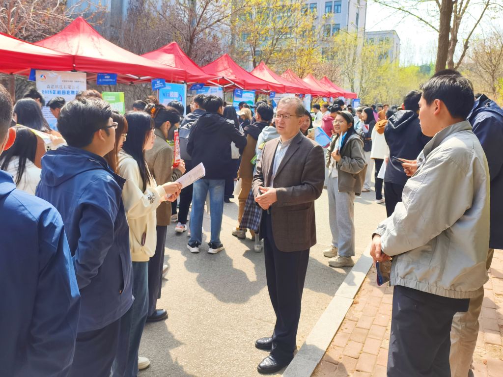 4月11日,学校2025年春季综合类大型双选会在崂山校区三创中心楼前举办。招聘会现场,学院开展青年学生就业指导能力提升自主培训。结合招聘现场实际,学院党委书记任允晓为学院全体辅导员进行培训和工作部署。