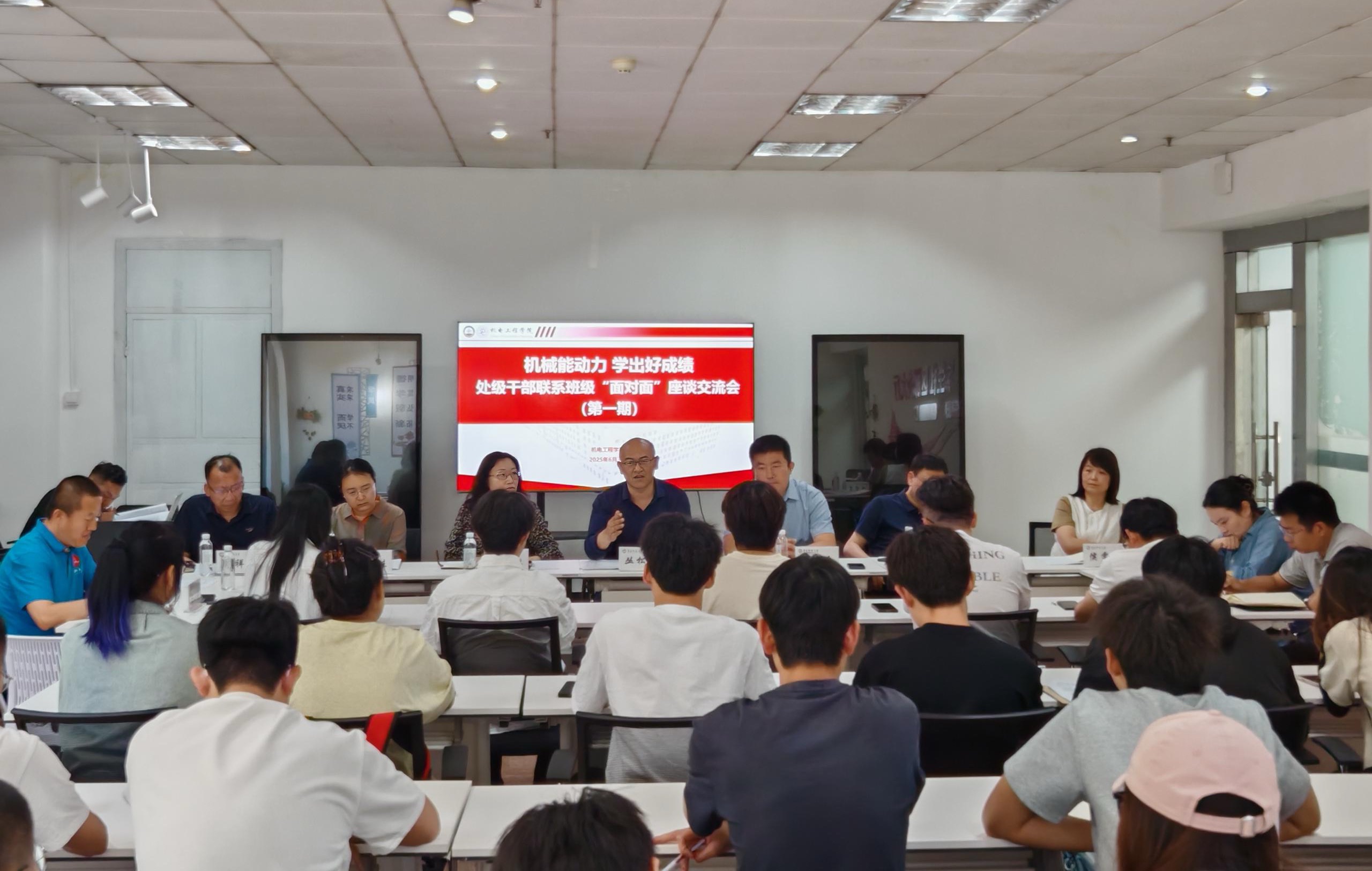 6月3日,pg娱乐电子游戏在校一站式社区组织“机械能动力、学出好成绩”处级干部联系班级“面对面”座谈交流会(第一期)。校离退休工作处处长丛松涛、国际交流与合作处处长陈兵、党委统战部副部长魏琳、纪委监察专员办公室王豫凌、侯雯雯、孟祥军、李佳,学院2023级辅导员杜康、崔瑛,班主任代表潘弋人,2023级班长、团支书参加会议,会议由学院党委副书记兼副院长杨小明主持。