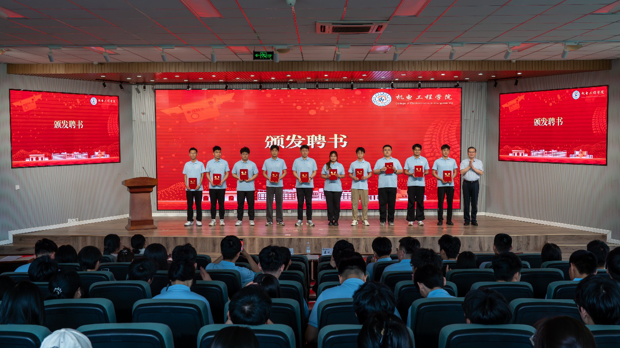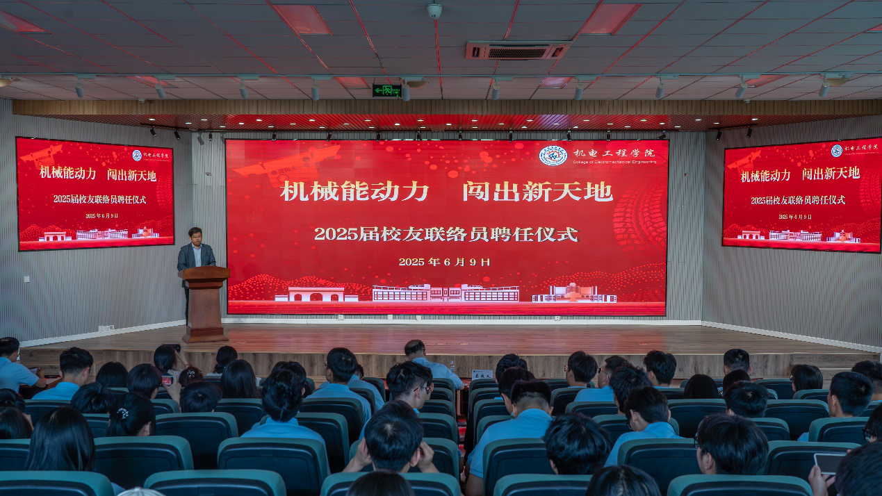 在校友联络员聘任仪式上,学院党委书记任允晓向2025届校友联络员颁发聘书,并寄语校友联络员一是要积极联络校友感情,了解校友需求;二是要积极宣传校友成就,展示校友风采;三是要积极拓展校友资源,健全校友组织,凝聚校友力量,为推动学校高质量发展贡献机电力量。