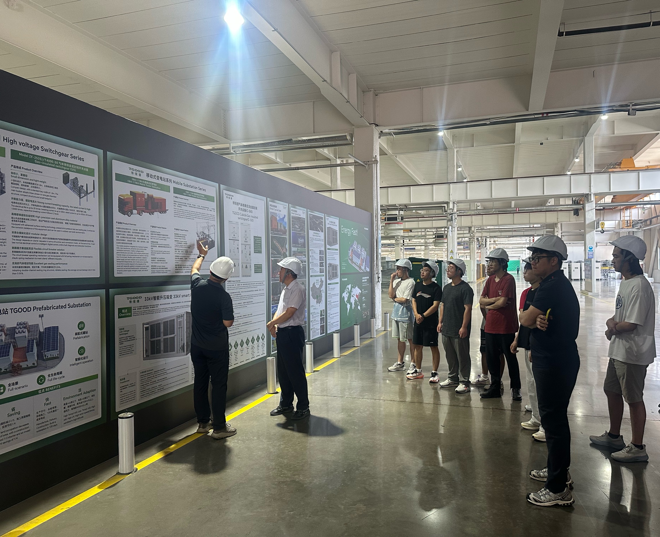 7月11日,pg娱乐电子游戏党委副书记兼副院长杨小明一行15人赴青岛特锐德电气股份有限公司胶州生产基地开展访企拓岗。特锐德电气股份有限公司技术数智化标准副总工程师王贵罡、人力资源中心总经理助理焦雪莹、人力资源中心校园招聘负责人董琛陪同调研,学院8名2026届毕业生参加活动。