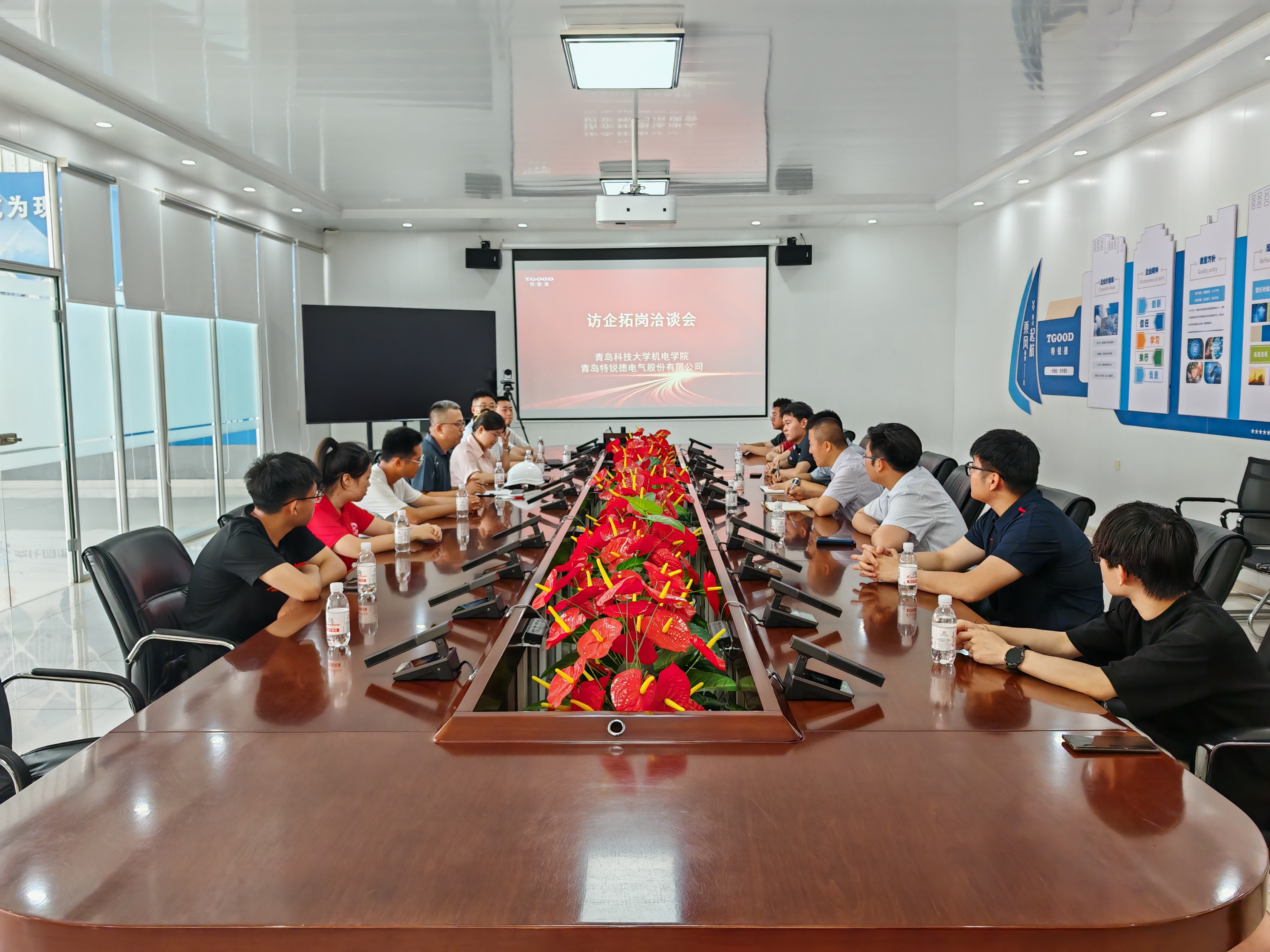 杨小明一行实地参观了特锐德中低压车间、大箱变和海外交付中心等厂区,深入了解企业生产流程、技术研发、海外业务布局等,切身感受其在电力设备智能制造领域的领先技术实力与产业优势。随后,双方举行座谈会,王贵罡介绍了公司经营状况、发展战略及人才需求,重点介绍了学院院友在特锐德的发展情况,并对青科大人才培养和毕业生素质给予了高度评价。杨小明介绍了pg娱乐电子游戏的学科建设、专业设置、人才培养、中韩合作办学等方面情况,重点介绍了2026届毕业生情况,希望特锐德在接下来的校园招聘工作中,吸收更多优秀科大学子加盟特锐德。随后双方就科研合作、成果转化、人才培养等方面进行交流洽谈。参加活动的3名2026届毕业生表达了自己加盟特锐德的强烈愿望。