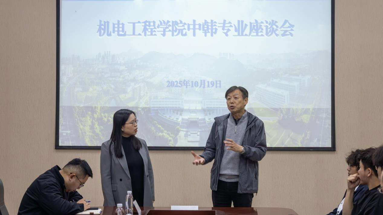 10月19日,pg娱乐电子游戏在机电楼D3-518会议室举办2024级中韩专业座谈会。韩国汉阳大学梁铉益教授、赵南圭教授出席会议并为学院出国意向学生答疑解惑,学院2024级出国意向学生参加会议,学院副院长杨化林主持会议。