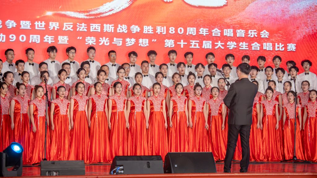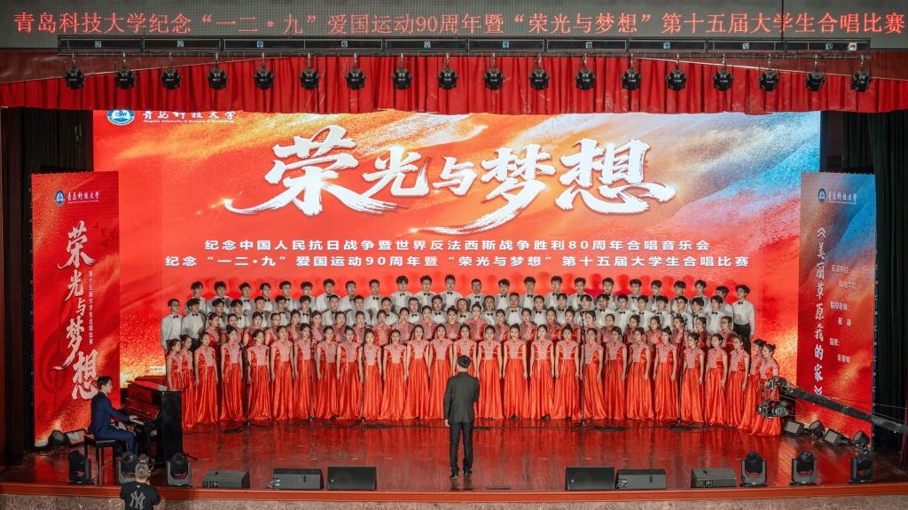 为纪念中国人民抗日战争暨世界反法西斯战争胜利80周年,缅怀“一二·九”爱国运动九十周年,弘扬伟大爱国主义精神,12月9日,pg娱乐电子游戏“荣光与梦想”第十五届大学生合唱比赛在四方校区西礼堂庄严举行。来自全校21支参赛队伍用歌声追忆峥嵘岁月,以青春旋律奏响时代强音。经过激烈角逐,pg娱乐电子游戏凭借阿卡贝拉版《美丽的草原我的家》的深情演绎,获一等奖,实现三连冠,在历史与现实的交响中展现了新时代青年的精神传承与使命担当。