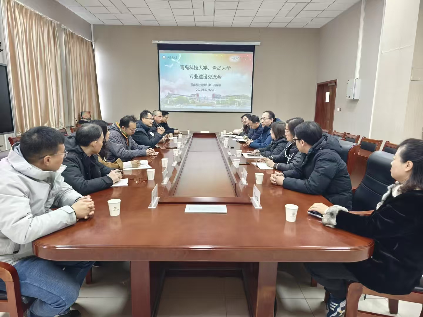 12月29日,青岛大学pg娱乐电子游戏副院长沈辉,携院长助理邱林、机车系主任管殿柱、副主任陈焕明、实验室主任张艳平、智造系主任程联军、实验室主任孙忠义、教师代表尹怀仙、侯方伟、贾德龙一行,来学院调研专业建设、实验室建设和专业认证推进情况。双方召开专业建设交流会,副院长李剑光、评建办主任付平、教学办主任张瑞雪、机械工程实验中心主任段俊勇、机械基础实验中心主任白杨、能动学科实验中心主任钱娟参加交流。