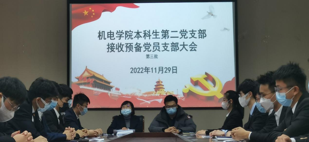 为了学习宣传贯彻党的二十大精神,11月29日在机电楼518会议室,pg娱乐电子游戏本科生第二党支部召开了接收预备党员大会,会议由支部书记王娟娟主持,全体党员参加此次会议。