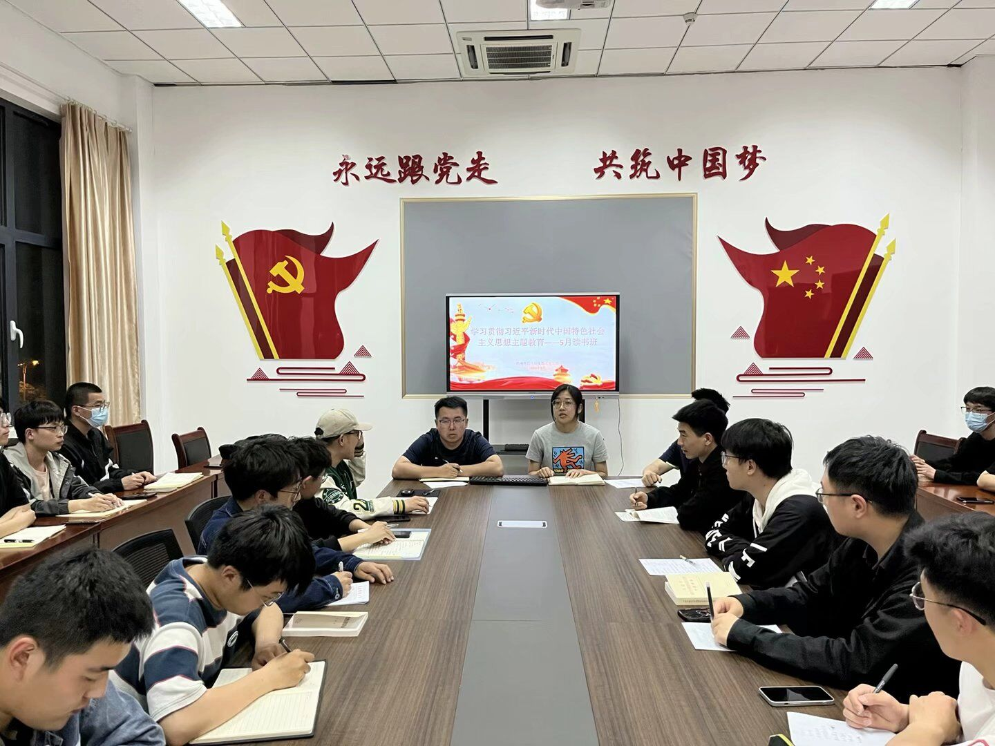 胡福超老师领学了习近平在学习贯彻习近平新时代中国特色社会主义思想主题教育工作会议上的讲话精神;宋达老师宣读了主题教育近期任务明白纸;史普晶、王勇、任启航3名同志从“祖国近5-10年发展变化”、“坚持人民至上,走群众路线”等方面分享个人学习感悟。全体成员通过学习不断增进对党的创新理论的政治认同、思想认同、理论认同、情感认同,把自己摆进去、把职责摆进去、把工作摆进去,切实用习近平新时代中国特色社会主义思想武装头脑、指导实践、推动工作。