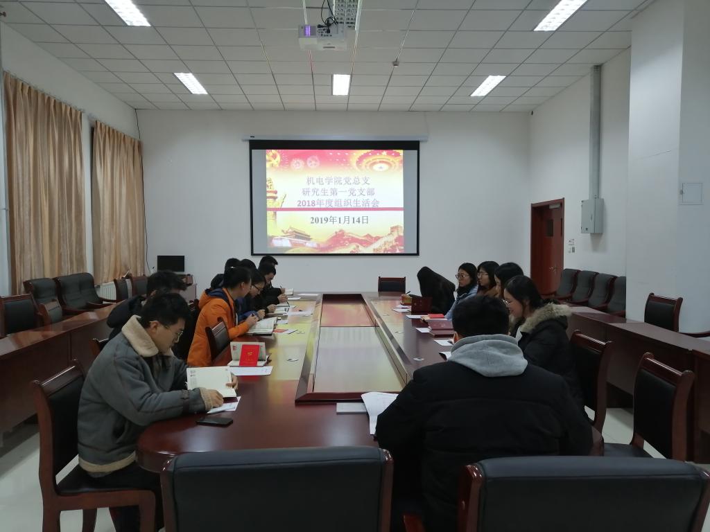 按照学校党委组织部《关于召开基层党支部组织生活会及2018年度党内评议评优工作的通知》要求,1月14日晚,pg娱乐电子游戏党总支研究生第一党支部在机电楼518会议室召开2018年度组织生活会。会议由党支部书记李浩老师主持。