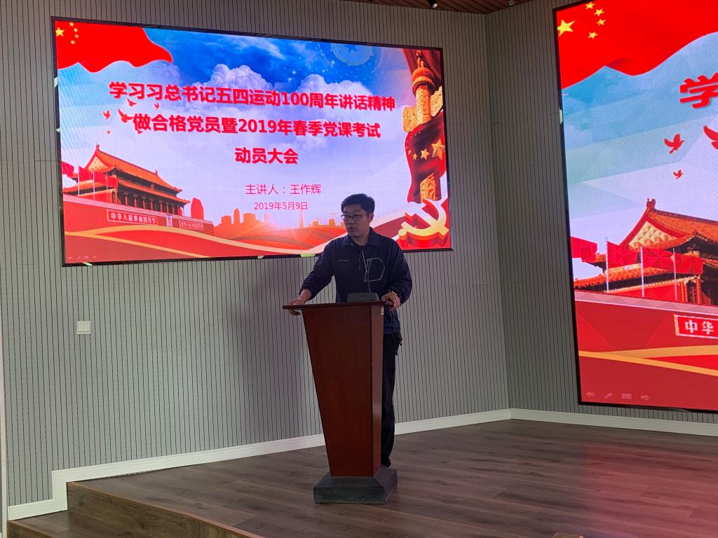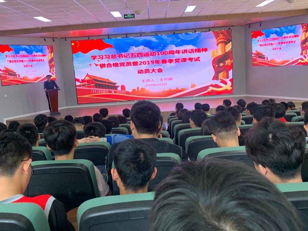 为进一步深入学习贯彻习近平总书记纪念五四运动100周年大会重要讲话精神,激励引导学子争做合格党员,弘扬五四精神。5月9日中午,pg娱乐电子游戏举行学习习近平总书记五四运动100周年讲话精神做合格党员暨2019年春季党课考试动员大会。院分团委书记王作辉主持会议并讲话,2019年春季入党积极分子和发展对象参加了会议。