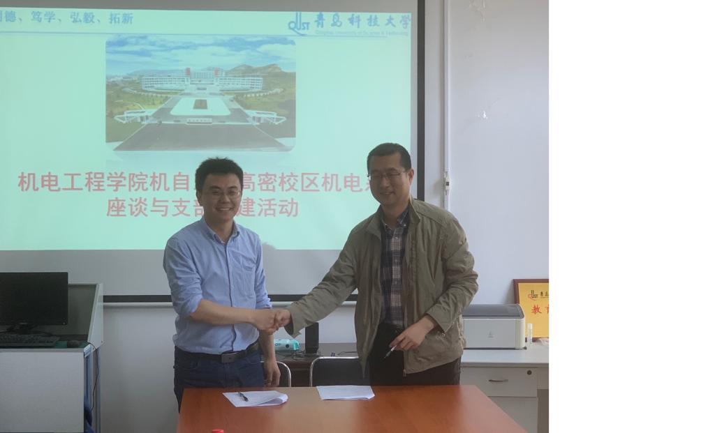 在党建共建签约仪式上,高密校区机电系党支部与pg娱乐电子游戏机自系党支部书记就各自支部基本情况做了简要介绍,并签订了支部共建协议。刘保成对于本次活动表示高度支持,希望两个支部通过共建能够共同提高,共同发展,特别是对于高密机电系这是一次很好的学习机会,要把握机会促进机电系的成长。机自系支部书记曹同坤对于这次支部共建的目的、内容进行了介绍,指出要通过此次共建不断推动“强党建、深合作、促发展”,一方面要促进党支部党建工作的发展,另一方面要通过共建促进中心的发展,让党建工作落到实处,真正起到引领中心工作的作用。
