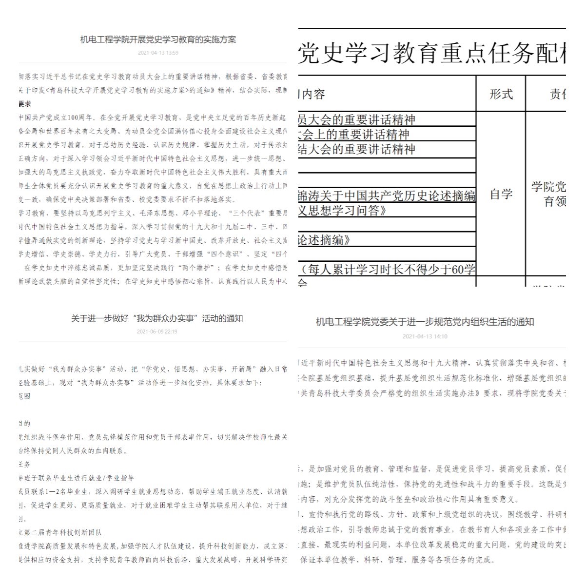 自党史学习教育开展以来,pg娱乐电子游戏党委坚持把其作为重要政治任务,认真贯彻落实有关决策部署和学校工作要求,立足工作实际,坚持规定动作做到位、自选动作有特色,多措并举,扎实推进,务求取得实效,相继出台了《pg娱乐电子游戏开展党史学习教育的实施方案》《pg娱乐电子游戏开展党史学习教育重点任务配档表》《pg娱乐电子游戏党委关于进一步规范党内组织生活的通知》《pg娱乐电子游戏关于进一步做好“我为群众办实事”活动的通知》等,为学院开展党史学习教育明确了时间表、路线图、任务书,在开展党史学习教育进而迎接建党100周年过程中,学院党委始终坚持“四个联动”,扎实推动党史学习教育走深走实。