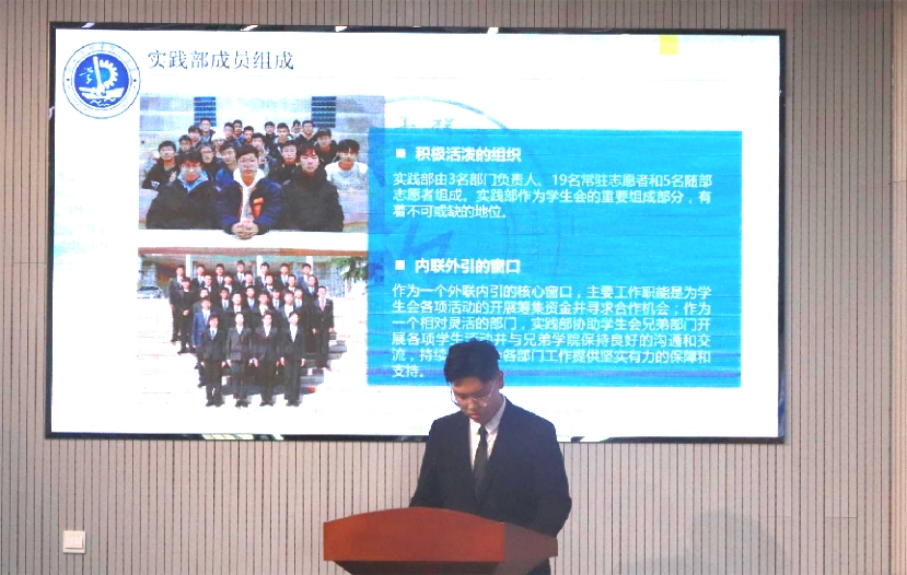 会议第二阶段,为全面落实2021-2022学年第一学期pg娱乐电子游戏学生会的工作开展情况,各部门负责人针对各部的工作情况面向学生会全体成员和老师进行学期工作汇报。