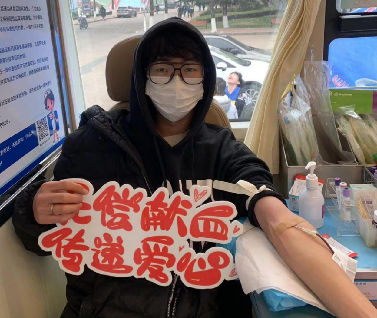 在献血车上,医护人员仔细检查每位献血者的身体状况,献血的同学们挽起衣袖,躺在采血椅上,献出自己的青春热血。志愿者们为同学们递上冒着热气的糖水,无微不至的关心令同学们倍感温暖。寒冬腊月,唯爱意,让生命之树亘古长青。