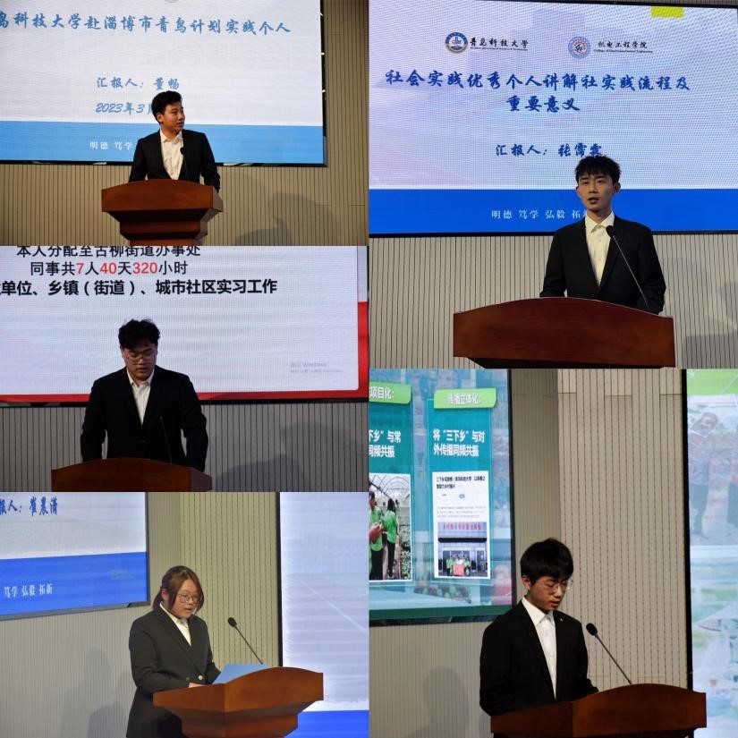 经过年级初评和文本评审,共有5支团队进入到现场汇报环节,优秀实践团队代表张霈霖、吕青霖、董畅、许佳琪、崔晨潇依次上台汇报,从乡村振兴,党史学习,青鸟计划等方向汇报了各自的实践内容、实践方式和实践成果,并分享了他们在实践中的青春成长故事。