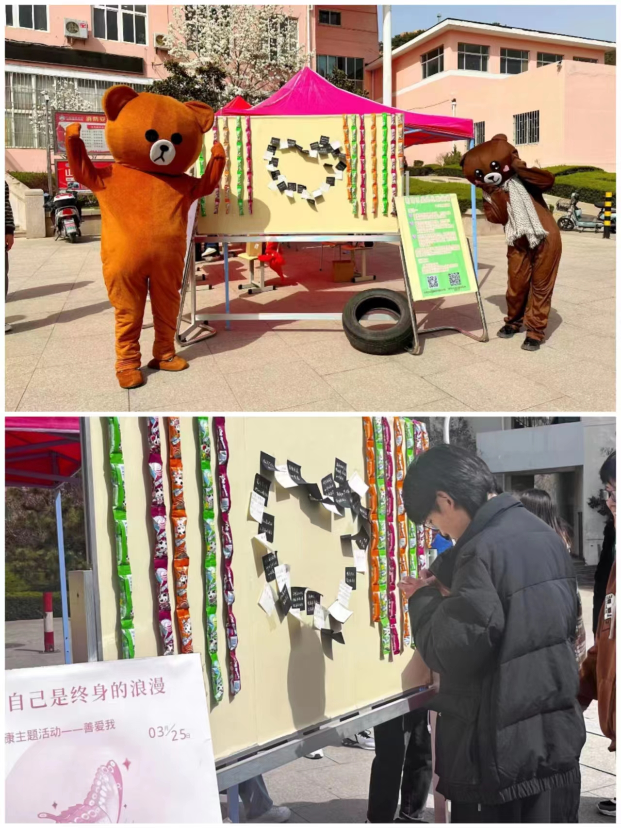 为进一步加强和改进大学生心理健康教育,倡导大学生善待自我、共创美丽校园。3月25日,pg娱乐电子游戏心理协会联合心音心理健康协会面向全校师生在南苑餐厅门口合办“3.25——善爱我”心理健康活动。
