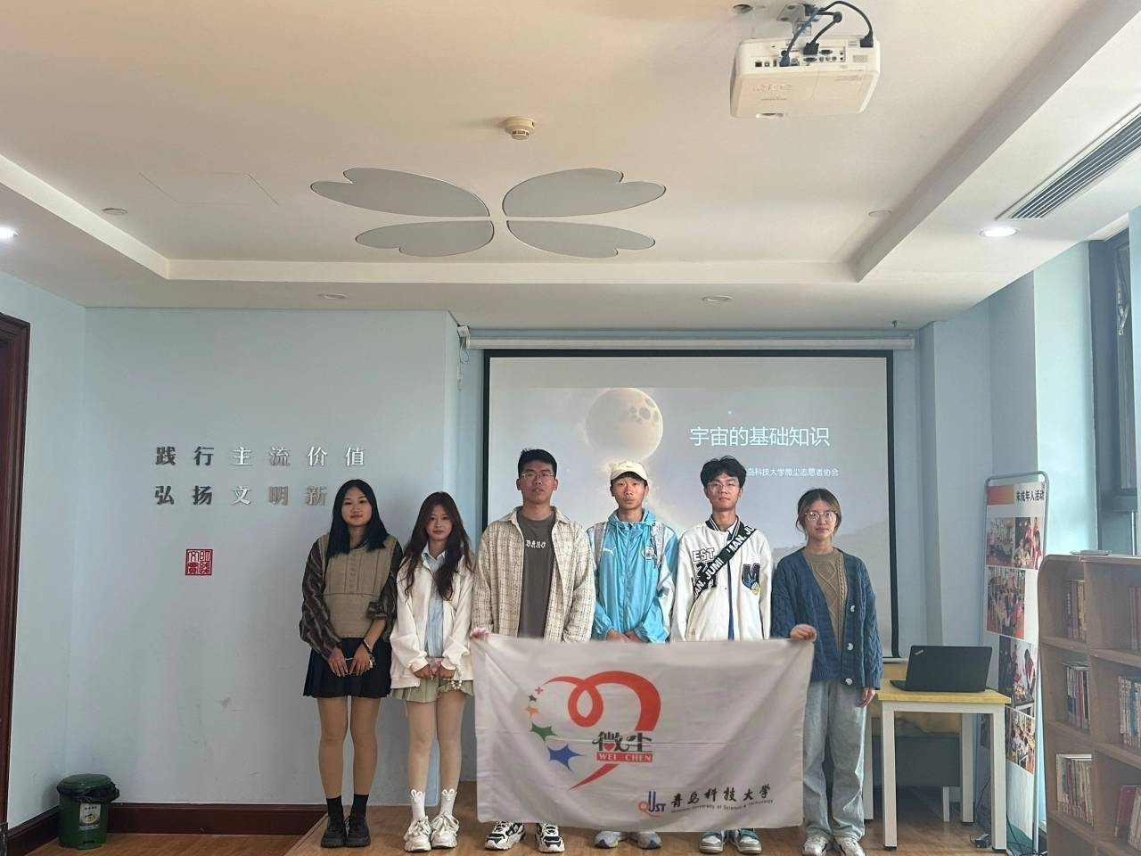 为响应团省委百万大学生进社区的号召,培养大学生社会责任感和公益意识,更好地认识社会,增加实践经验,pg娱乐电子游戏微尘志愿者协会携手延川路社区开展“青春益爱,追锋基层”文化小课堂志愿服务项目。10月22日上午,微尘志愿者协会志愿者面向延川路社区的小朋友们首次开展以“神秘的宇宙”为主题的科普小课堂活动。