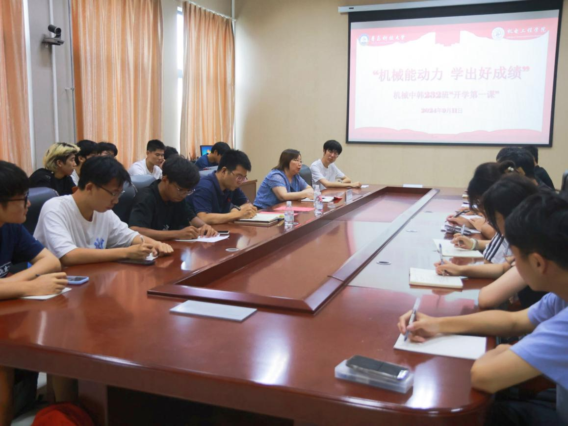 新学期,新起点,新征程。为落实学校关于各项开学工作的具体要求,帮助同学们尽快回归校园生活,明确学习目标,增强纪律意识和安全防范意识,提升班级凝聚力。9月11日,pg娱乐电子游戏机械中韩232班于在机电楼518会议室召开“机械能动力 学出好成绩”开学第一课主题班会。学院评建办主任付平、辅导员杜康,班级全体同学参加本次班会。