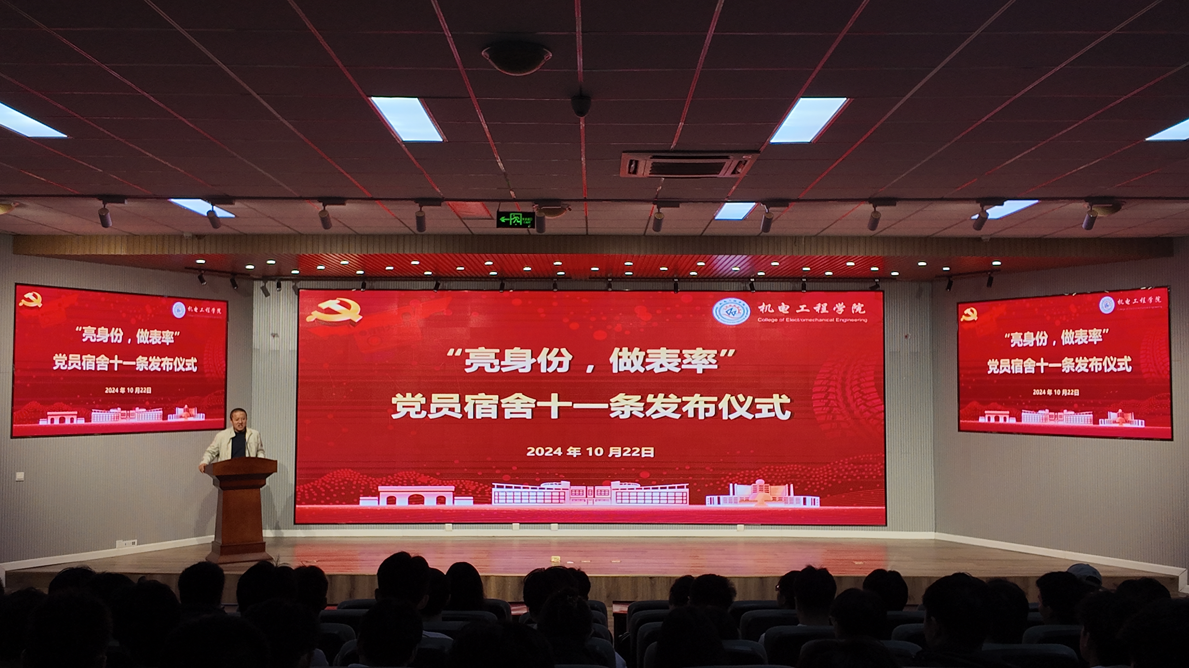 10月22日,pg娱乐电子游戏在机电楼530会议室举行“学院党员学生宿舍十一条”发布仪式,深入落实学校宿舍文化建设整体工作部署,让中共党员“亮身份、做表率”,学院辅导员、全体党员参加活动。