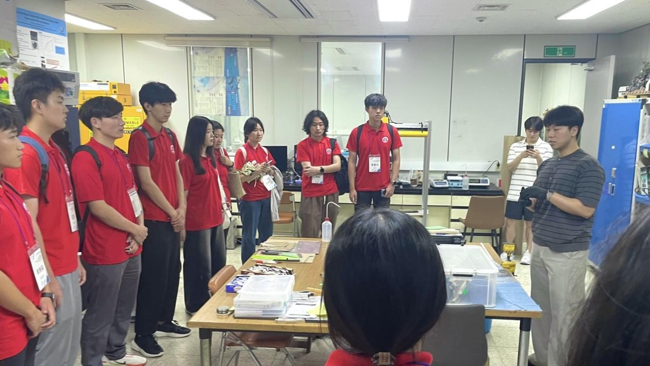 活动首日,实践团与汉阳大学机械系教授进行了深度学术交流。教授们系统地介绍了研究领域、前沿动态与实验成果,并带领团队成员们参观了配备先进设备的实验室,详细讲解了机械工作原理。交流过程中,成员们展现出浓厚的专业兴趣和积极的求知态度,踊跃提问,其专业素养与学习热情赢得了教授们的高度评价。