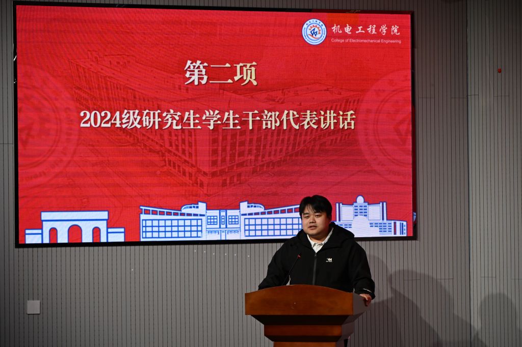 在主题团课上,逄柏鹏为2025级研究生团学干部代表颁发聘书,并代表学院团委向全体研究生团学干部表示祝贺,结合学校学院实际,围绕团学工作使命,提出四点希望:一是筑牢思想根基,提升引领力,以理想信念为舵,做传递价值导向、凝聚青春力量的“机电排头兵”;二是强化协作意识,锤炼组织力,主动担当作为,成为推动学院各级团组织建设提质增效的“关键抓手”;三是坚守服务初心,增强服务力,牢记“全心全意为同学服务”的宗旨,脚踏实地为同学办实事、解难题;四是立足长远发展,提升贡献度,在科研创新、学科竞赛、志愿服务等领域勇当先锋,以实际行动彰显新时代研究生的青春底色与责任担当。