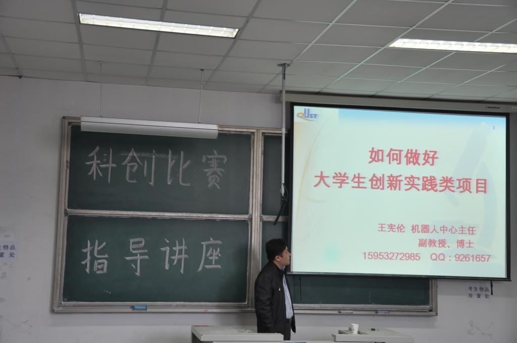 4月21日上午9:00,由pg娱乐电子游戏科技创新协会组织举办的科创比赛指导讲座于弘毅楼E区103教室举行,pg娱乐电子游戏机器人中心主任王宪伦亲临现场指导,讲座吸引了广大科技爱好者积极参加。