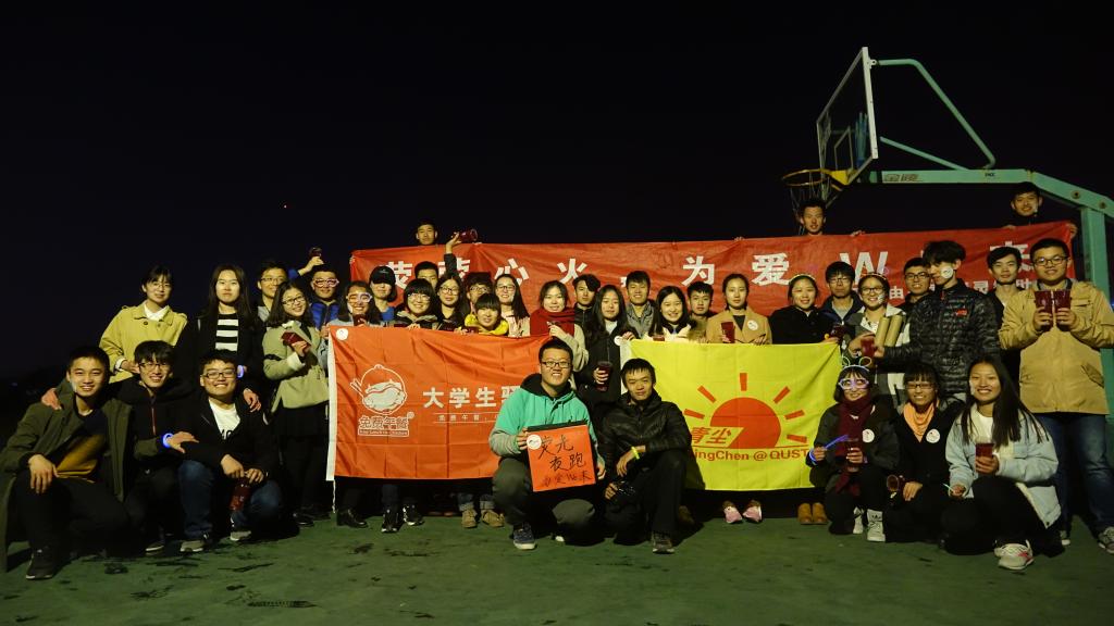 3月25日晚,pg娱乐电子游戏青尘义工队联合跑步爱好者协会及四方校区青年志愿者协会、新希望公益协会开展了首届“地球一小时”公益荧光夜跑活动,崂山校区由pg娱乐电子游戏青尘义工队和跑步爱好者协会主办,旨在宣传“免费午餐”计划和“地球一小时”节能理念。