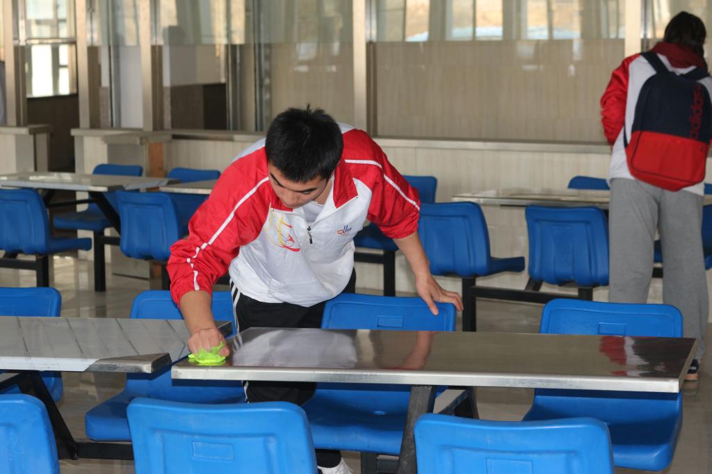 根据本次活动方案及分团委老师们的严密部署,全体志愿者分为两组进行义务清扫。一组负责擦洗桌椅,另一组负责清扫地面,尽管打扫过程很辛苦,但是同学们却热情饱满,做得十分用心,他们秉承着“学习雷锋,弘扬雷锋精神”的理念,不怕脏,不怕累,认真地清扫餐厅三楼的每个角落。通过近一个小时的艰辛劳动,北苑餐厅三楼的环境被干事们清理得干干净净。虽然辛苦,但志愿者们脸上的笑容却依然灿烂,透露出一种幸福的信息,尽管天气还有点寒冷,但是同学们的心里都暖洋洋的。新时代的雷锋精神在pg娱乐电子游戏学生会每个成员身上体现了出来。雷锋精神已深深融入到中华儿女建设祖国、奉献社会的热血中,更体现在了当代大学生助人为乐、无私奉献、全心全意为人民服务的活动中。