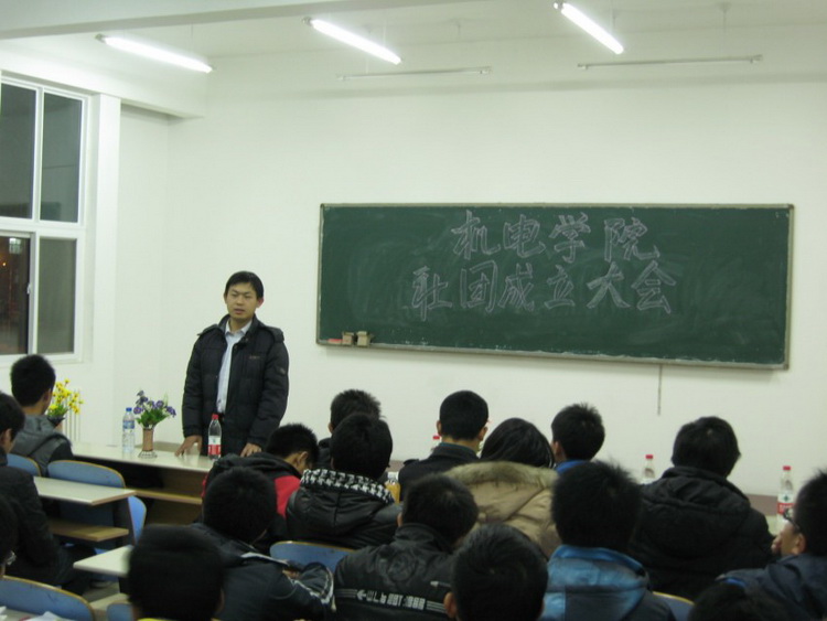 最后,辅导员老师秦洪庆讲话,对新成立的7个协会表示祝贺,并结合自身的经历对新成立的社团提出建设性意见,以“学生、干部、学生干部”三个关键词让同学们提高了对自我的认识,要求社团负责人用心经营社团,明确服务宗旨,团结协作,勇于创新,踏实工作,创造佳绩。