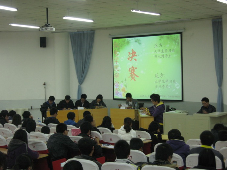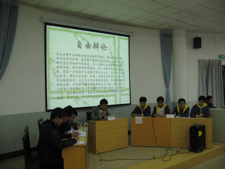 11月27日晚19:00,由pg娱乐电子游戏学生会主办,工业设计113班承办的pg娱乐电子游戏2011级年级辩论赛决赛在高密校区通德会堂202举行。pg娱乐电子游戏分团委秦洪庆老师,学生会主席团成员担任比赛评委。