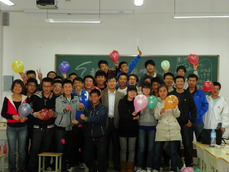 比赛在《相亲相爱的一家人》的动人旋律中拉开序幕。参赛选手按照序号依次上台演讲,同学们纷纷报以热烈的掌声。参赛选手针对激情与梦想发表演讲,谈论了各自对于梦想与人生的态度,用自己的语言描绘着自己的大学梦,抒发了自己对于未来的憧憬,指点江山,激扬文字,精彩不断,高潮迭起,让观众感受到了他们的青春活力。其中覃日富同学的演讲更是把会场气氛推向高潮。演讲之余,以宿舍为单位,同学们献计献策,在朗诵、唱歌和游戏中度过了一个丰富有趣的下午。秦洪庆老师在点评中对参赛选手给予了高度评价,结合自身的经历,再次强调了梦想对于人生的意义,并希望他们像在比赛中那样充满激情与活力,为实现自己的梦想而努力奋斗。最后,秦老师和班委为获奖的同学颁奖,全班合影留念。