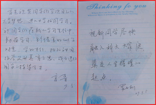 高青书记在对新生的寄语中写道:“首先祝福同学们实现自己的大学梦想,进入大学校园学习。祝同学们在新的学习生活中勤奋学习,珍惜美好的大学时光,学好本领,报效祖国,报答父母养育之恩,成为建设国家栋梁之才。”罗公利校长在留言中祝愿新生尽快融入科大大家庭,奠定人生辉煌的起点。李勇处长在寄语中祝愿2009级新生在科大成就梦想。刘传华书记在对新生的留言中写道:“传承科大精神,践行橡胶品格,祝2009级新同学同科大一同成长,越飞越高。”陈建国老师在走访pg娱乐电子游戏迎新工作时也为机电的新生们留下了寄语,陈老师鼓励新生们认真学习,不断努力,在大学毕业时站上一个新的高点。