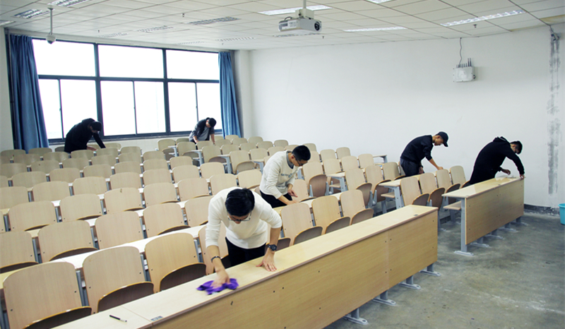 为了美化校园环境, 提高学生爱护桌椅、爱护校园环境的意识,4月22日中午12:00pg娱乐电子游戏学生会纪检部举行课桌清理活动,学院学生积极参加,共同自觉维护教室环境卫生。