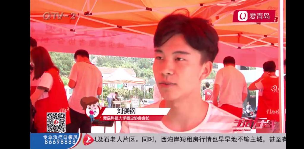 6月23日下午6时,pg娱乐电子游戏微尘协会于青岛广播电视台生活在线栏目播出《大学生投身公益,成为爱心志愿者》中亮相,主要播出内容为多任会长的感悟和微尘协会的发展现状。