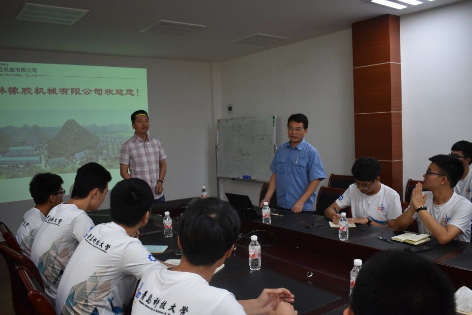 桂林橡胶机械有限公司人力资源部部长徐开来代表公司在办公楼三楼会议室接见了pg娱乐电子游戏师生,他向在座的师生表示热烈的欢迎,并随后介绍了公司现在的经营状况、获得的荣誉、公司的人员结构以及公司的品牌产品。桂林橡胶机械有限公司技术部高鹏校友向在座的师生做了产品方面的交流,并诚挚邀请学校的学弟学妹们在毕业之后加入桂林橡胶机械有限公司。