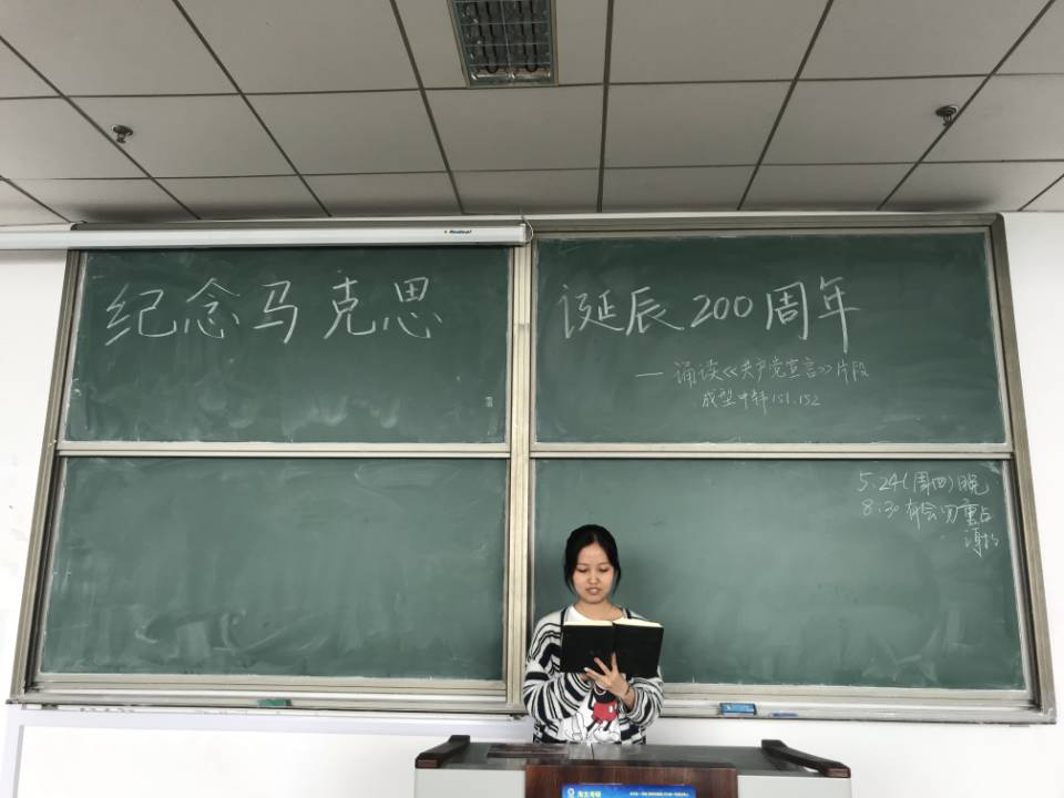 ALPS专业和成型、设计专业分班级举行诵读《共产党宣言》活动,组织学生以文稿朗读形式响应此活动,同学们都感情充沛,尽情表达自己的感情。朗读结束后,同学们又一次了解和认识了马克思主义,武装了头脑,用坚定的理想信念作为自己学好专业、全面发展的原点和基础。同学们把学好马克思主义基本原理作为自己平时修身养性的一个很重要内容,因为马克思主义是我们立党立国之根本,每个年轻人只有把自己的命运和国家的前途紧密联系起来,才能实现更加有意义的人生价值。