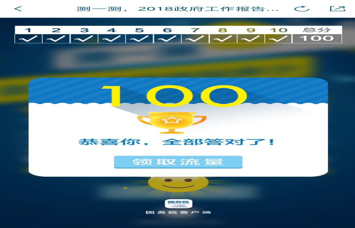 五、开展“测一测,2018政府工作报告知多少”网上答题活动