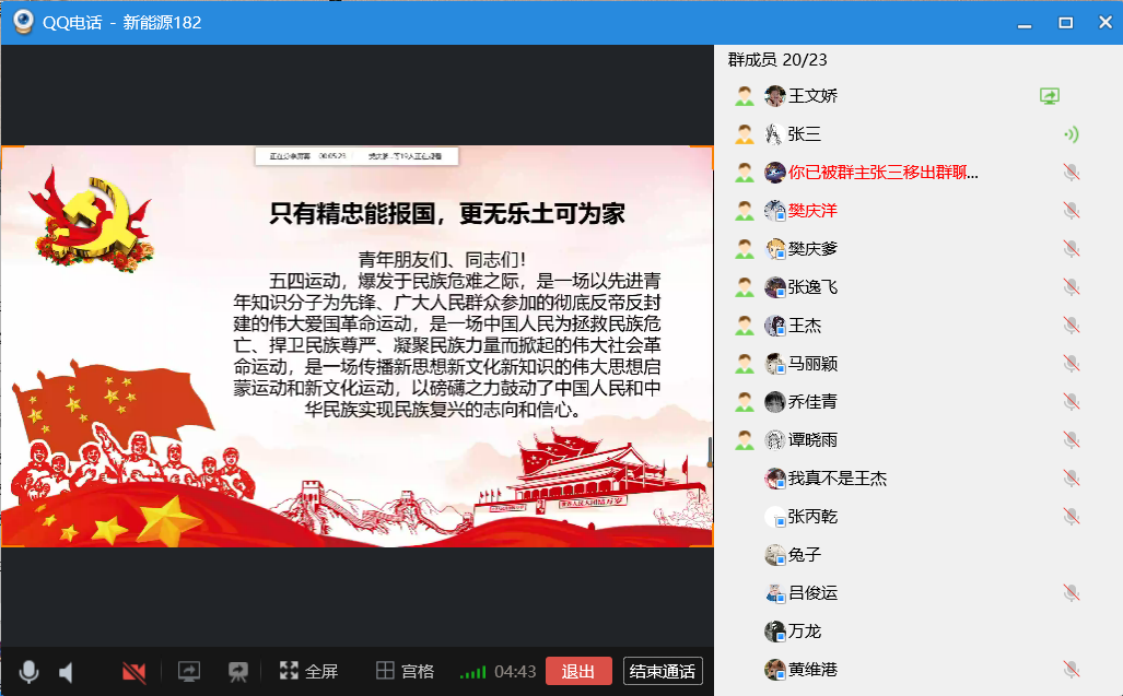 在五四青年节到来之际,pg娱乐电子游戏分团委组织部开展【绽放战疫青春 坚定制度自信】系列活动之纪念五四运动100周年大会讲话一周年暨“五四精神,传承有我”线上主题团日活动,旨在继承和发扬伟大的五四精神,培育团员青年爱国、爱党、爱团的坚定信念,激励团员青年万众一心投入到共青团的建设中去。pg娱乐电子游戏各团支部积极响应,依托网络平台,采取多种方式开展活动。下面,让我们一起回顾各团支部活动的精彩瞬间!