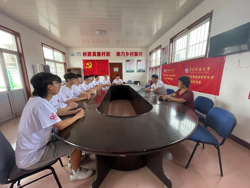 为深入开展“暑期‘三下乡’社会实践活动”,落实“我为乡村办实事”的活动主题。2021年7月18日上午,pg娱乐电子游戏暑期乡村振兴实践团赴青岛胶州洋河镇曲家炉村进行社会调研实践活动。在带队老师郭佩佩的带领下,针对乡村发展、果园种植等问题分别对村支书进行了采访。