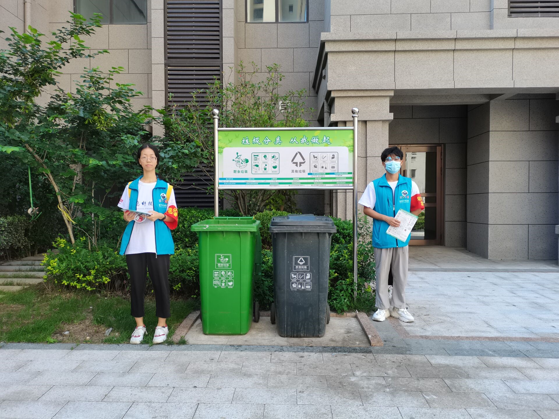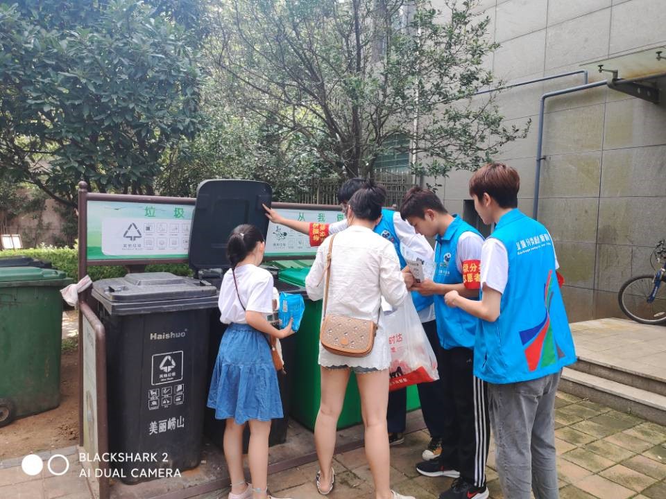通过在展馆的参观学习,队员对垃圾分类知识有了比较系统完备的知识基础,为进一步推动青岛市的垃圾分类进程、提高社区居民的垃圾分类意识,2021年7月19日,pg娱乐电子游戏赴崂山区中韩街道“垃圾分类我先行”志愿服务团队员于多个社区内的垃圾桶旁对居民进行了垃圾分类驻桶引导。