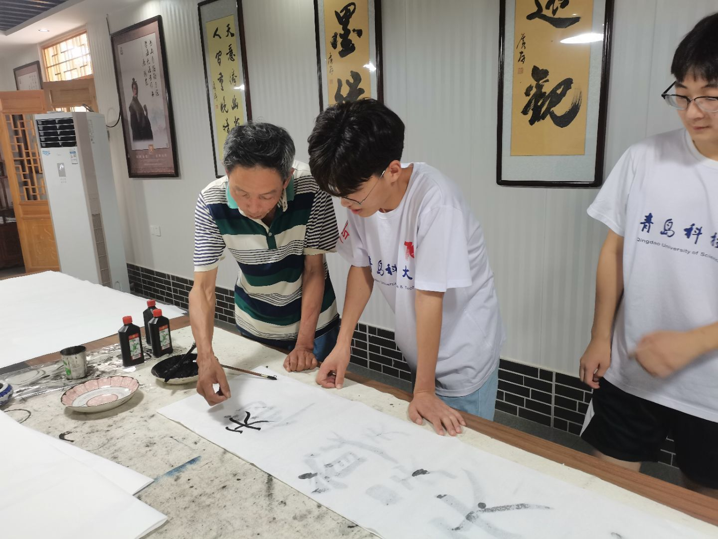实践团在参观的途中注意到,村子道路两旁设立了文化墙,还有很多古香古色的建筑,远处的湖面建成了长桥和亭子,还设立了大戏台,为村民的文化生活又增添了一份色彩。