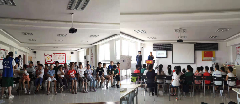 在春秋暑托班里,社区党组织为孩子们专门开设了一节党史特色课,我组成员曲国凯、周琪贺有幸成为该课程的主讲人。在这堂课上,他们细致地回顾了中共的百年历史,展望未来。课上还特别邀请了春秋街道公安局宣传部门来协助教学,叙述在党的领导下,春秋社区翻天覆地的变化。经过他们的讲解,孩子们对我党有了更加深刻的认识,学会了听党话,跟党走,感党恩的道理。