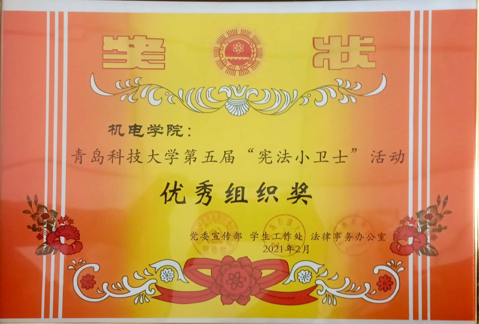 为贯彻党的十九大和十九届二中、三中、四中、五中全会精神,落实全面依法治国方略,引导学生了解宪法知识,理解宪法内涵,pg娱乐电子游戏积极组织学院学生参与“宪法小卫士”活动,荣获学校第五届“宪法小卫士”优秀组织奖。