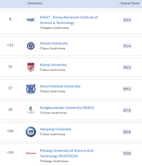 汉阳大学连续4年蝉联QS亚洲大学第24名