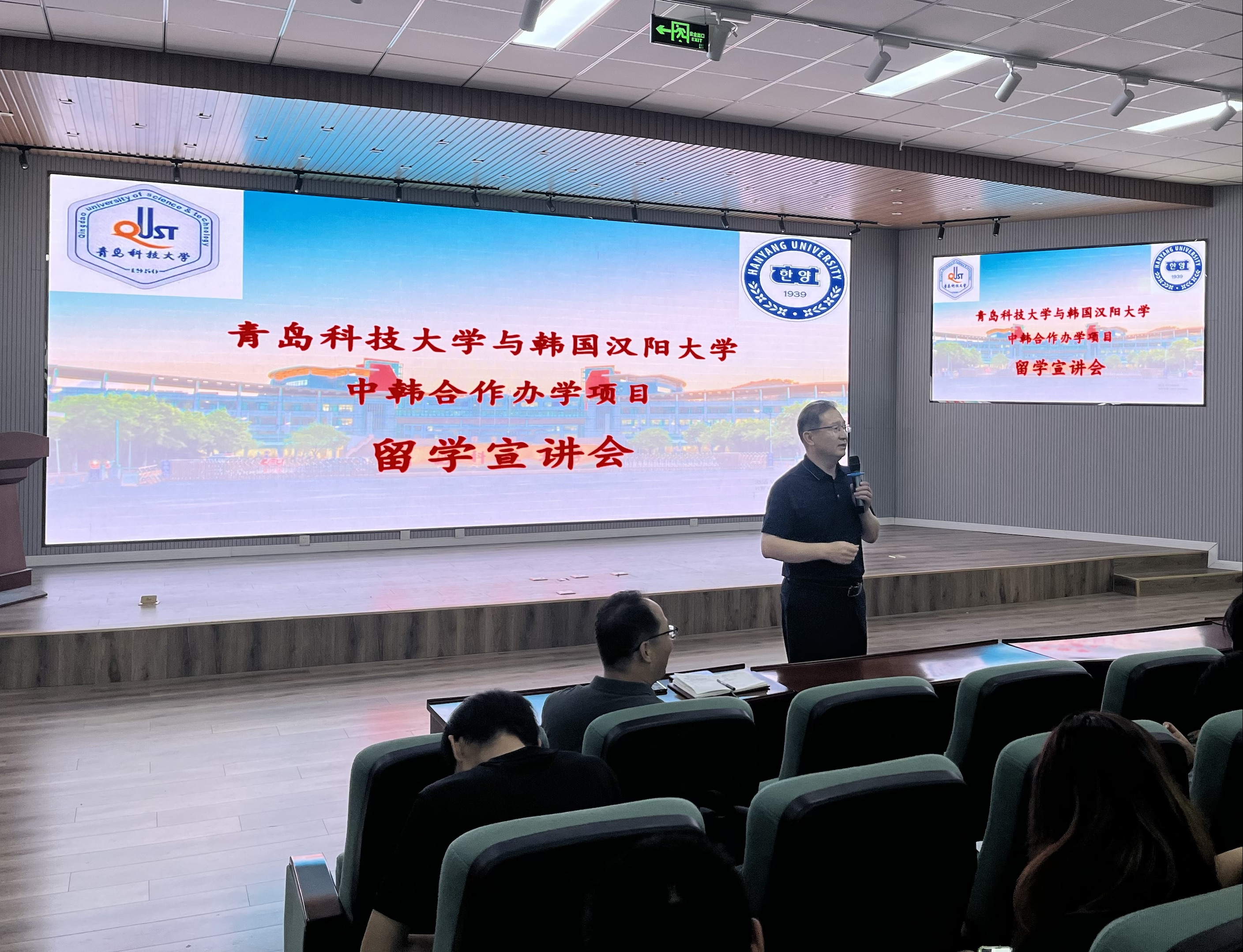 6月27日下午,pg娱乐电子游戏与韩国汉阳大学中韩合作办学项目留学宣讲会在崂山校区机电楼530会议室召开。学院党委书记任允晓、副院长李剑光、项目负责人林奕出席了会议。