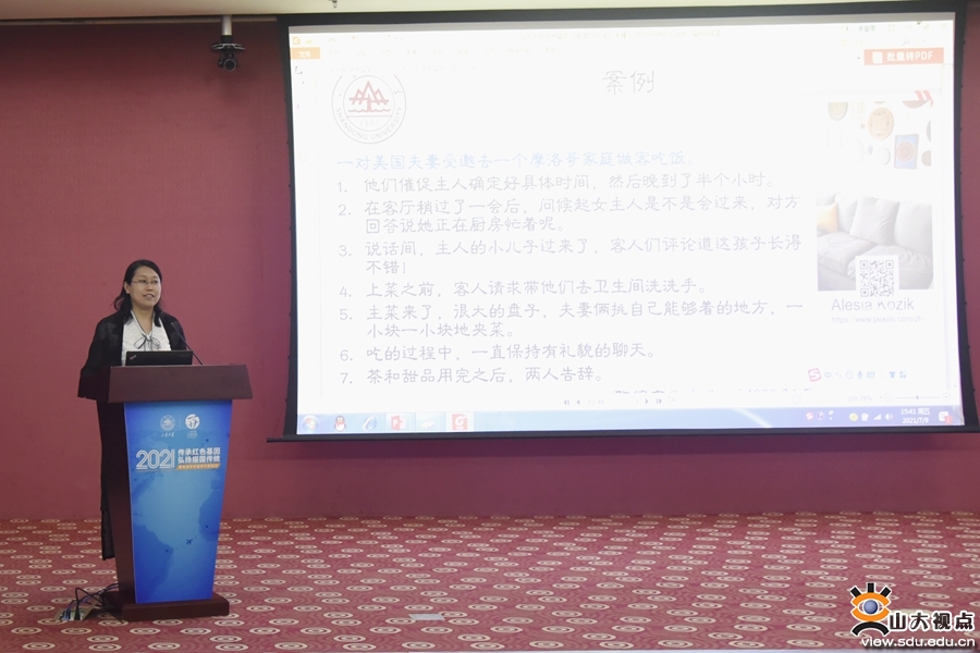 培训会上,外交部领事司领事保护中心随员嵇湄结合其驻外工作的实践与经历,介绍了中国领事保护工作、留学生常见海外安全问题以及应对方法。北京德威安保集团教官杨玲玲和唐娟从安全意识、防卫技巧、突发事件应对、逃生技巧等多个方面对出国人员进行了培训,并现场示范遇到袭击、火灾等事件的应急与自救方法。陕西师范大学心理学院陈青萍教授向参会师生讲解了在国(境)外期间排解压力和负面情绪,保持健康积极心态的方法。山东大学马克思主义学院副院长郑敬斌以“跨越百年的自信与从容”为主题作讲座,鼓励留学人员特别是青年一代牢记使命担当,贡献青春力量。新闻传播学院副院长邱凌讲授了国际传播能力建设的重要性、留学人员个体的国际传播作用以及如何讲好中国故事。跨文化交流与研究中心副主任朱耀云通过一系列案例介绍了跨文化适应的阶段和培养跨文化适应能力的方法。